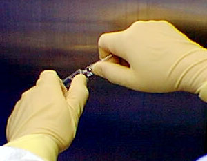 Once opened the ampule may be placed in the laminar flow air of the hood.