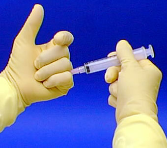 The needle cover is removed to draw the drug solution from the ampule. Draw the needle cover straight off the needle - do not turn or the needle will come loose from the syringe.