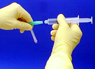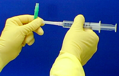 by unscrewing it from the LuerLok connector on the end of the syringe.