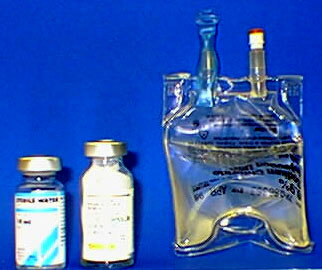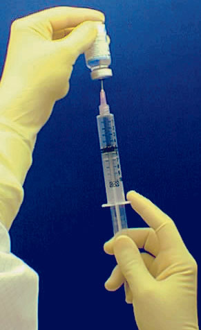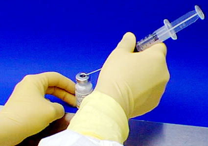 Clean air is injected into the sterile water vial to help extract the sterile water from the vial.