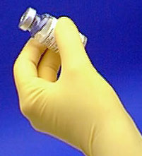 The vial is slowly and gently shaken. Quick or sharp movements in the laminar flow hood are not acceptable since non laminar air flow results and the cleansing properties of laminar flow air are lost. Quick movements can also create particles.