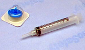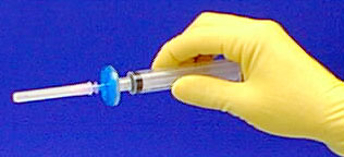The filter assembly on the syringe.