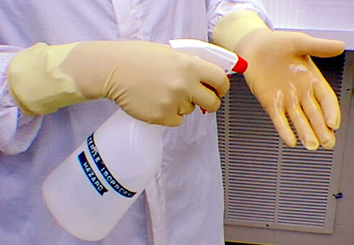 Hands sprayed with IPA will dry quickly in laminar flow air.
